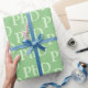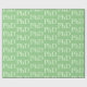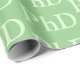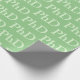 PhD graduation wrapping paper in shades of light green. The word PhD repeats in a pattern across the length of this wrapping paper.