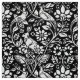 Fabric in a William Morris, Art Nouveau wallpaper design of pheasants and hares set among leaves, vines and flowers - white on a black background