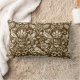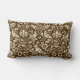 Lumbar pillow in a William Morris, Art Nouveau wallpaper design of pheasants and hares set among leaves, vines and flowers - beige on a chocolate brown background