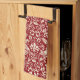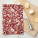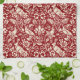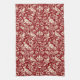 Kitchen towel in a William Morris, Art Nouveau wallpaper design of pheasants and hares set among leaves, vines and flowers - cream / winter white on a deep Chinese red background