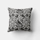 Throw pillow in a William Morris, Art Nouveau wallpaper design of pheasants and hares set among leaves, vines and flowers - black on a subtly textured white background