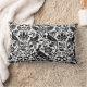 Lumbar pillow in a William Morris, Art Nouveau wallpaper design of pheasants and hares set among leaves, vines and flowers -black on a subtly textured white background