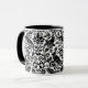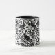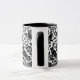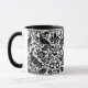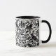 Mug in a William Morris, Art Nouveau wallpaper design of pheasants and hares set among leaves, vines and flowers - Black on a subtly textured white background