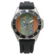 Has heft and feel of expensive stainless steel quartz wrist watches. Solid construction and good looks. Although it had a really top quality rubber strap, I substituted a stainless steel "Shark" style mesh strap, which I think is the most comfortable strap available. Perfect. True colors of original image. Clear, crisp image precisely aligned and spaced.