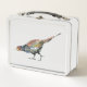 This is a standard metal lunchbox that appears to work just fine. We designed this box ourselves with an uploaded photo and custom text on the front and back. It looks absolutely beautiful except the front of the lunchbox is not centered like it shows in the photo. The print borders don't align with the inset flat part of the box where the preview photo online showed it perfectly centered in there. The back looks nice and centered though.