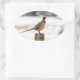 This is a Pheasant in Wyoming, USA standing on a fence post in the winter. There is snow in the background.