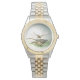 The watch is very nice, the picture is great and the watch looks like quality. The only problem I am having with it is that it is a little too large, and I also can't figure out how to open the clasp. No directions came with it. Very good. The printing is perfect and the watch keeps good time.
