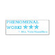 This inspiring rubber stamp design features the encouraging message "PHENOMENAL WORK!" and a personalised teacher's name. It also features decorative star icons. It could be used by a teacher, educator, instructor, or tutor when marking assignments, to indicate that a student has done well.