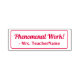 "Phenomenal Work!" + Tutor's Name Rubber Stamp