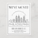 A unique modern deco-style moving announcement postcard for the beautiful city of Philadelphia, Pennsylvania. This card features a stylised illustration of the city's unique skyline with its name underneath. This is followed by your address information in a matching open-lined style. All individual elements of the card are unlocked so feel free to change or add any details necessary by using the customisation function.
