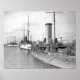 Three ships are in ordinary at the Philadelphia Navy Yard. The nearest ship is the coastal ram USS Katahdin, subject of one of my mugs. The centre ship is the cruiser USS Columbia. There are three possibilites for the third ship. She is a cruiser. and she is either the: USS Baltimore, USS Philadelphia or the USS Texas.