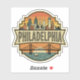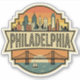 The artwork features a retro-style emblem showcasing the historic Philadelphia skyline, anchored by the iconic City Hall topped with the William Penn statue, and flanked by modern skyscrapers. Below the bold "PHILADELPHIA" banner, the majestic Benjamin Franklin Bridge spans the Delaware River with a sailboat cruising at sunset. Rendered in a nostalgic palette of muted teal, rust, and cream, this design is the perfect souvenir for proud Philadelphians and history buffs.