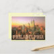 Silhouetted against the twilight of evening, the fabulous modern skyline of Philadelphia rises into the night.