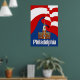 Patriotic travel poster for Philadelphia, featuring independence hall.