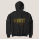 This women's hoodie showcases a bold two-tone print font with light/dark yellow letters displaying the "Philippians 4:13" KJV bible verse scripture with a typograph style and look in the bible quote theme. This hoodie is incredibly soft and relaxed spun from a plush poly-cotton blend great for everyday wear with a larger matching image printed on the back.