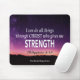 Inspirational Christian Scripture MOUSE PAD with the Bible verse from Philippians 4:13 - I CAN DO ALL THINGS THROUGH CHRIST WHO GIVES ME STRENGTH.. The placeholder name is CUSTOMIZABLE, so you can PERSONALIZE by replacing with your name or choice of text. Part of the INSPIRATIONAL PRINTS Collection by Berean Designs.