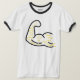 This mens ringer t-shirt has a design that features the "Philippians 4:13" bible verse scripture with a handwritten style print font with yellow letters set on a flexing bicep plus black outline in this faith based scripture quote theme. This tee has a vintage-inspired look featuring contrasting cuffs and neckline for a sporty yet casual look.