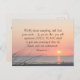 Inspirational scripture postcard depicts a beautiful photograph of a golden sunset over blue ocean waters. It features a potion of Bible Verses Philippians 4:6, 7, "PRAY about everything; tell God your needs... If you do this, you will experience GOD'S PEACE which is far more wonderful than the human mind can understand." _