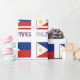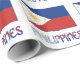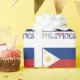 Gift wrapping paper featuring the Filipino Flag. The flag is blue on top, red on the bottom with a white triangle on the left side. Each corner of the triangle has a star and a sun is in the centre of the triangle. The word PHILIPPINES is below the flag, in the colours of the flag. Share your heritage with this wrapping paper. Great for all occasions.