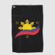 Philippines flag - artistic, abstract fine art has patriotic country colours, sun and three stars. Use for OFW Overseas Filipino Worker or American with Pilipino heritage roots. >> Cute gift idea for Tagalog teacher, Southeast Asia international volunteer, or Manila study abroad student. >> Customisable artwork. Add YOUR OWN personal name or custom message. Click "Personalise this template" and create your own additional text, customise the background shape, graphic, etc. to make your final design.