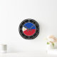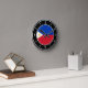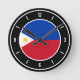 Philippines Flag Elegant Round Clock with the Philippines flag positioned in the middle and lovely white clock numbers on the clock edge. Delightful black background with the white oval elements finalize the design putting emphasis on the elegance. Beautiful combination of black and white with the skillful integration of the national flag colors make this clock the perfect gift and the great show piece on the wall. © CountriesOfTheWorld