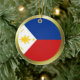 Both sides of this ornament feature the flag of Philippines morphed into a circle with a golden rim. Simple Filipino decoration for your home.