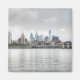 This is the beautiful skyline of the city of Philadelphia, taken from across the Delaware River at the Camden waterfront. The architecture of the skyscrapers and buildings of Philly are on display in this photo. Centre City, the downtown area of Philadelphia, is the focus of this photograph. Clouds hang overhead in the stormy sky, and the skyscrapers' reflections are seen in the water.