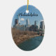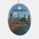 This is the beautiful skyline of the city of Philadelphia, taken from a bridge crossing the Schuylkill River. The architecture of the skyscrapers and buildings of Philly are on display in this photo. Centre City, the downtown area of Philadelphia, is the focus of this photograph. Puffy clouds hang overhead in the winter sky.