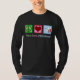 A cool Phlebotomist Christmas gift for an expert at blood draws and needles. A peace sign, heart, and vials of blood. Peace Love Phlebotomy men's shirt.