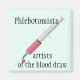 Syringe and blood drop with text that says Phlebotomists, artists of the blood draw.