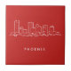 This design features a hand drawn sketch of the Phoenix skyline on a rust coloured background.
