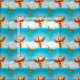 Lovely fantasy pattern features a Firebird of Myth and Magic rising into the sky with ember sparks. The Phoenix bird is born from from the ashes of it's pyre . Born in flames, a symbol of hope and new beginnings.Vibrant orange, and gold with a touch of indigo blue on wing tips over an aqua blue sky and white clouds