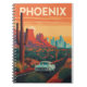 This Phoenix-themed notebook features a vintage-style illustration that captures the unique beauty of the Sonoran Desert. The cover shows a classic car driving through a landscape of saguaro cacti and red rock formations, with the city skyline in the distance. This spiral notebook is a perfect gift for travelers, nature lovers, or anyone who appreciates the classic, retro charm of Arizona.