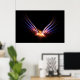The Phoenix is the mythological fire bird. This original abstract poster captures the essence of the Phoenix in it's vibrant design.
