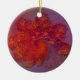 A repeated fractal pattern like the flaming feathers of the mythical firebird. Swirls of vivid orange, purple, and gold against a muted lavender and pale orange and pink backdrop.