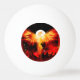 A ping pong ball featuring a Phoenix rising from the ashes.