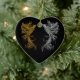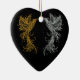 decorative lineart design of two phoenix birds in yellow and white colours facing each other on a ceramic ornament