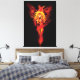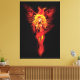 Woman that is a flame with wings. A phoenix woman in red, orange and yellow flame in a backdrop of black.