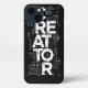 a minimalist cyberpunk streetwear design featuring bold vertical "CREATOR" typography, glitch effects, HUD interface elements, geometric shapes, and digital smiley icons. Designed in high contrast white-on-black vector style, it embodies futuristic techwear aesthetics and edgy urban fashion. Perfect for fans of cyberpunk, glitch art, and modern streetwear graphics.