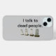 Genealogy humour - "I talk to dead people" is the text accompanying four headstones. Background is grey)