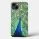 Royal blues and greens are the colourful feathers on this proud peacock. Deep blue body against the light green tail.