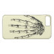 Phone case with a vintage inspired drawing of a skeleton hand.
