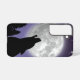 Phone case with a wolf howling at the full moon