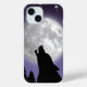 Phone case with a wolf howling at the full moon