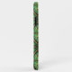 Phone case with an intricate green and brown leaf pattern, featuring circular designs and floral elements. The style is vibrant and nature-inspired.