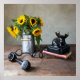 Still Life with Sunflowers and Vintage manual Telephone