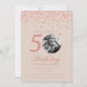 Photo 50th Birthday Rose Gold Confetti Champagne Invitation
