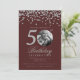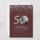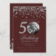 Photo 50th Birthday Silver Confetti Burgundy Invitation