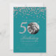 Photo 50th Birthday Silver Confetti Turquoise Invitation