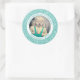 Photo 50th Party Random Number Pattern Teal Classic Round Sticker